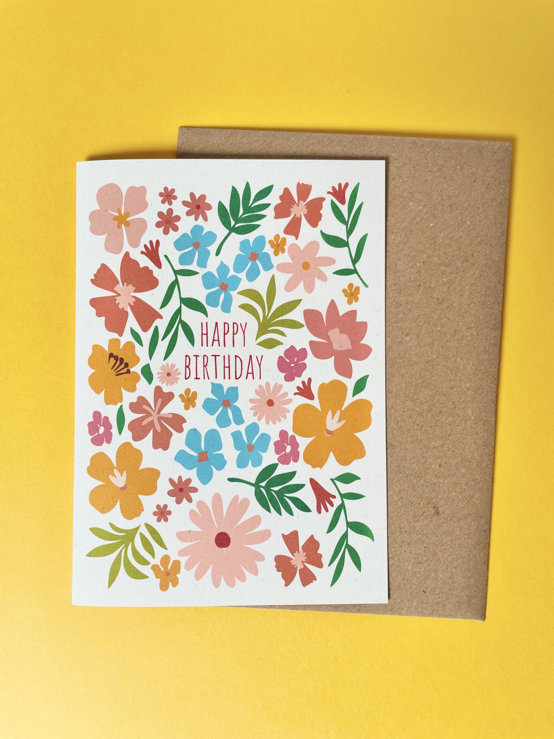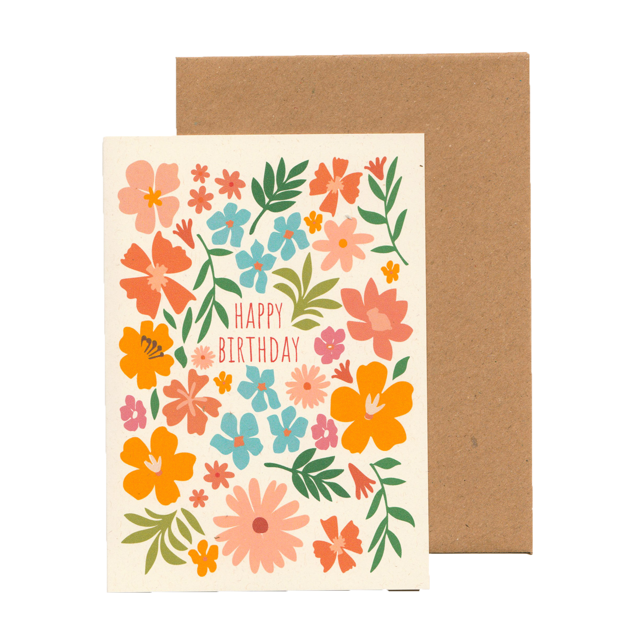 Bring the energy of a bustling flower market to your message. This bold floral design is vibrant, cheerful, and perfect for brightening someone’s day. Blank inside for your own personal message. Printed on FSC® certified card with 80% recycled fibres and 20% ECF virgin fibres, and paired with a 100% recycled kraft envelope. Hand-designed in…
