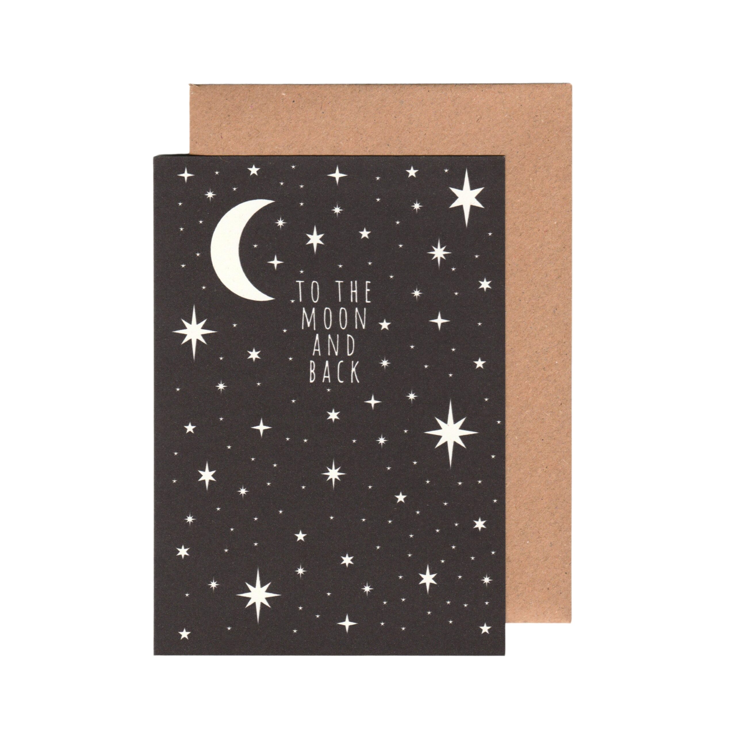 Love You to the Moon and Back Card – Romantic Card, Black & White Starry Night Design